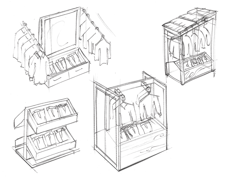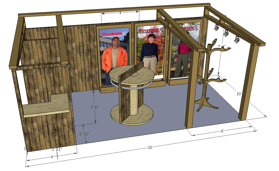 was what our client was seeking when they approached us with their project for an outdoor gear company. We created sketches and later 3D CAD mockups of various clothing display fixtures as well as modular booth layouts for both 20'x20' and 10'x20' booth layouts.